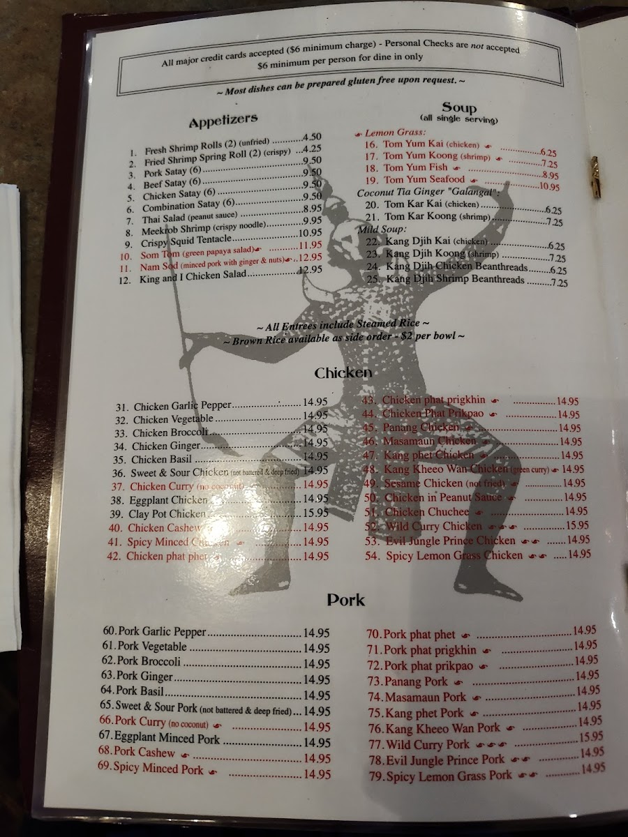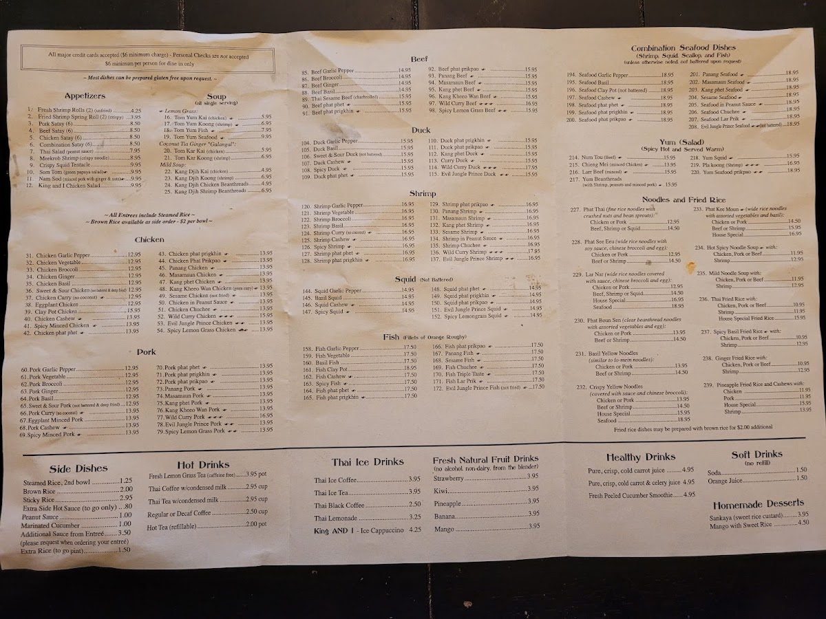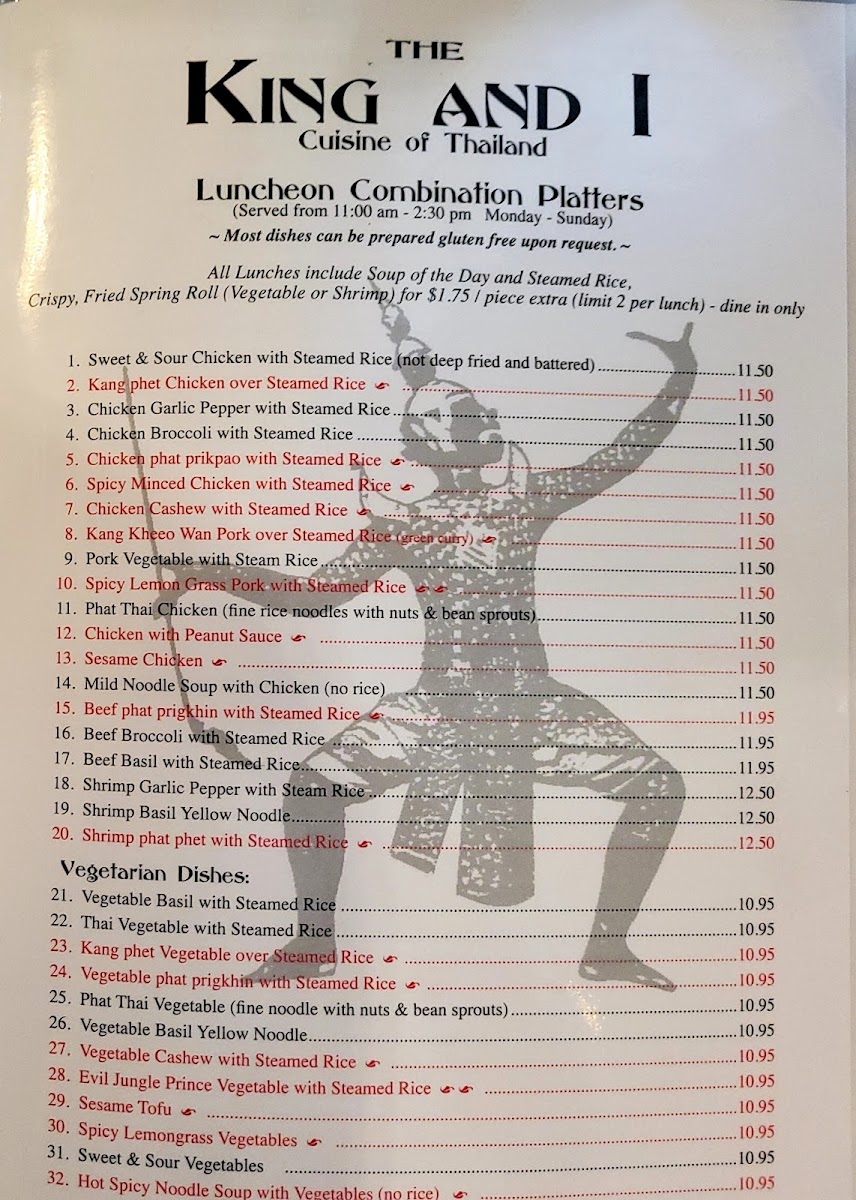 When you're craving something authentic and flavorful, The King And I Cuisine Of Thailand Menu is the perfect place to satisfy those Thai food cravings. Nestled in the heart of Rochester at 1455 E Henrietta Rd, this restaurant brings the bold and aromatic tastes of Thailand right to your plate. From the moment you dive into the menu, you'll be greeted with an array of dishes that perfectly balance heat, sweetness, and savory flavors. Whether you’re in the mood for a refreshing bowl of Tom Yum soup, a spicy green curry, or crispy Pad Thai, there's something to please every palate. The menu also offers a variety of options for vegetarians, ensuring that everyone can indulge in a Thai feast. So, grab your seat and let the flavors take you on a delicious journey through Thailand’s rich culinary heritage.